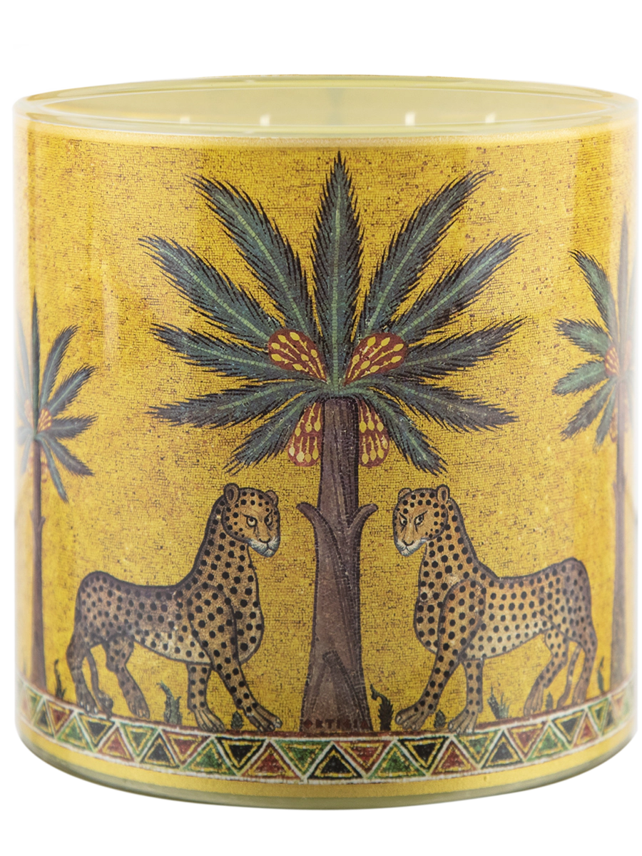 Un frasco de vidrio bellamente decorado con cera blanca, rico en perfume de ortigia.