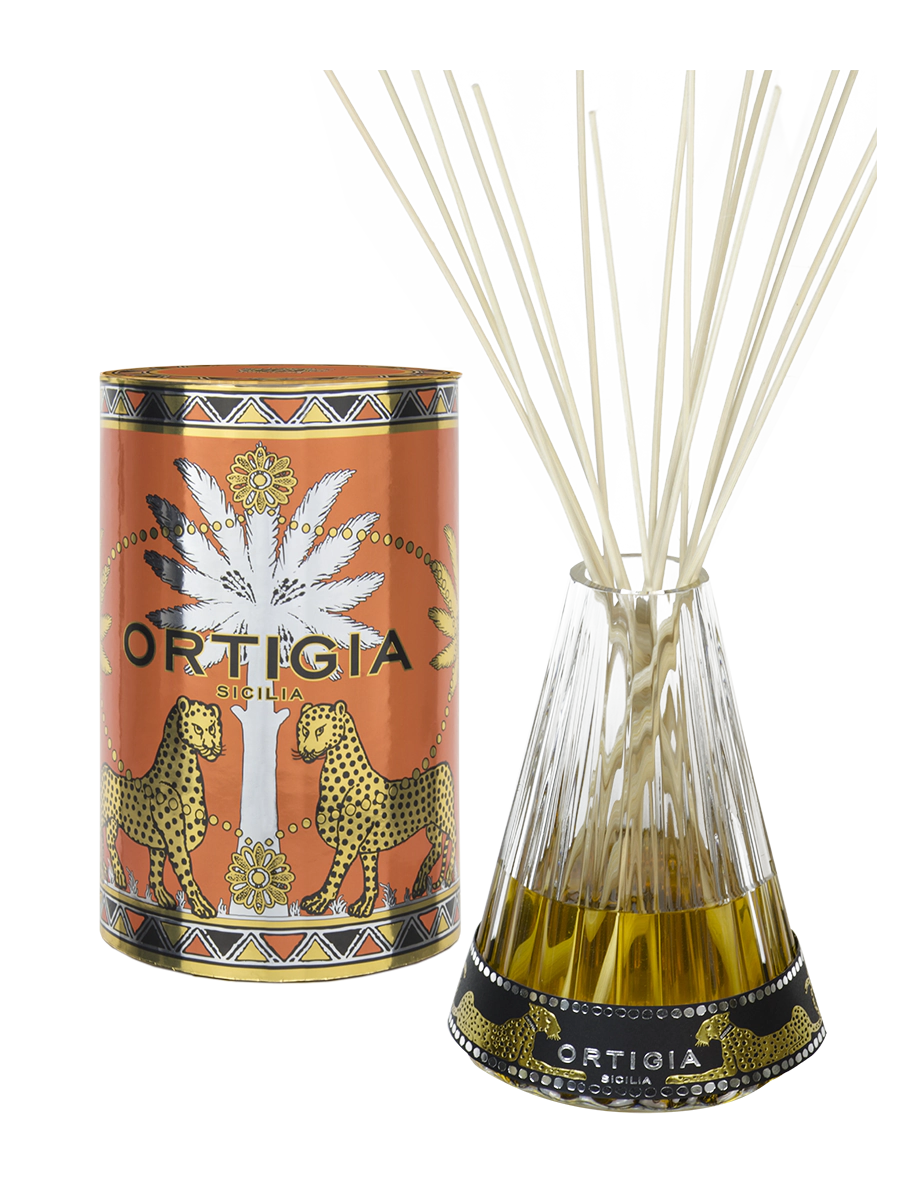 Cañas naturales en una preciosa botella exclusiva. El líquido perfumado se desplaza a través de las varillas, liberando una sutil y continua fragancia de ámbar almizclado y especias.